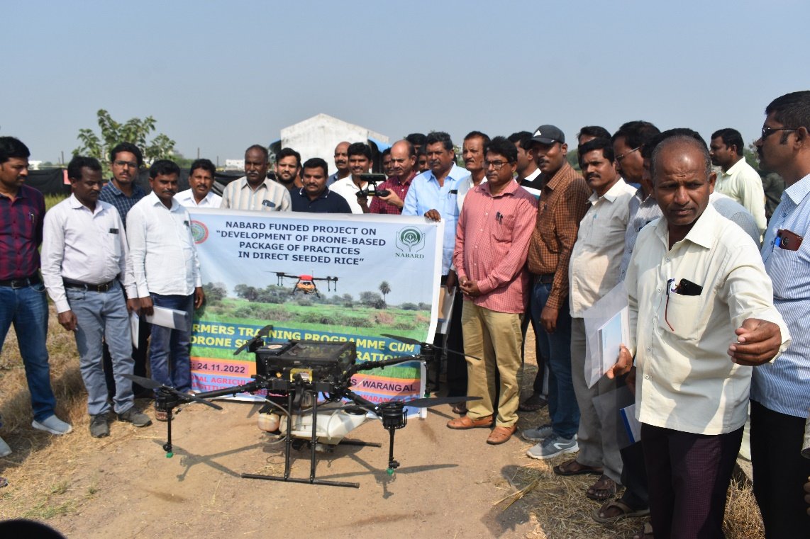 As a part of training and capacity building programmes to farmers and rural youth under NABARD-PJTSAU-Drone-DSR Project, a farmer training cum field demonstration of drone spraying in DSR was organized by Institute of Rice Research, ARI, Rajendranagar at RARS, Warangal in collaboration with DAATTC, Warangal on 24.11.2022. A total of 70 farmers and agricultural diploma … Read more