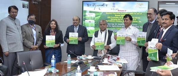 The adoption of drone technology is the need of the times and will benefit farmers. Stating this during the release of Standard Operating Procedures (SOPs) for drone application in Agriculture, the Union Minister Shri Narendra Singh Tomar said that under the leadership of Prime Minister Modi all policies since 2014 are aimed at doubling farmer’s income by 2022. He said that the formation of Farmer Producer Organisation (FPOs) and the Agriculture Infrastructure Fund (AIF) will bring about a revolution in the lives of small farmers.Considering the unique advantages of Drone technologies in agriculture, the Ministry of Agriculture & Farmers Welfare, (Department of Agriculture & Farmers Welfare) in consultation with all the stakeholders of this sector, has brought out Standard Operating Procedures (SOPs) for use of drones in pesticide and nutrient application that provides concise instructions for effective and safe operations of drones.